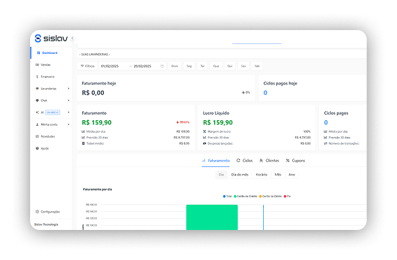 A inteligência que sua lavanderia precisa para crescer. O Sislav AI é seu Agente Inteligente, que responde seus clientes de forma humanizada e personalizada no WhatsApp. Além disso, ele analisa seus dados, sugere promoções, cria mensagens para marketing e oferece insights para aumentar seu lucro.